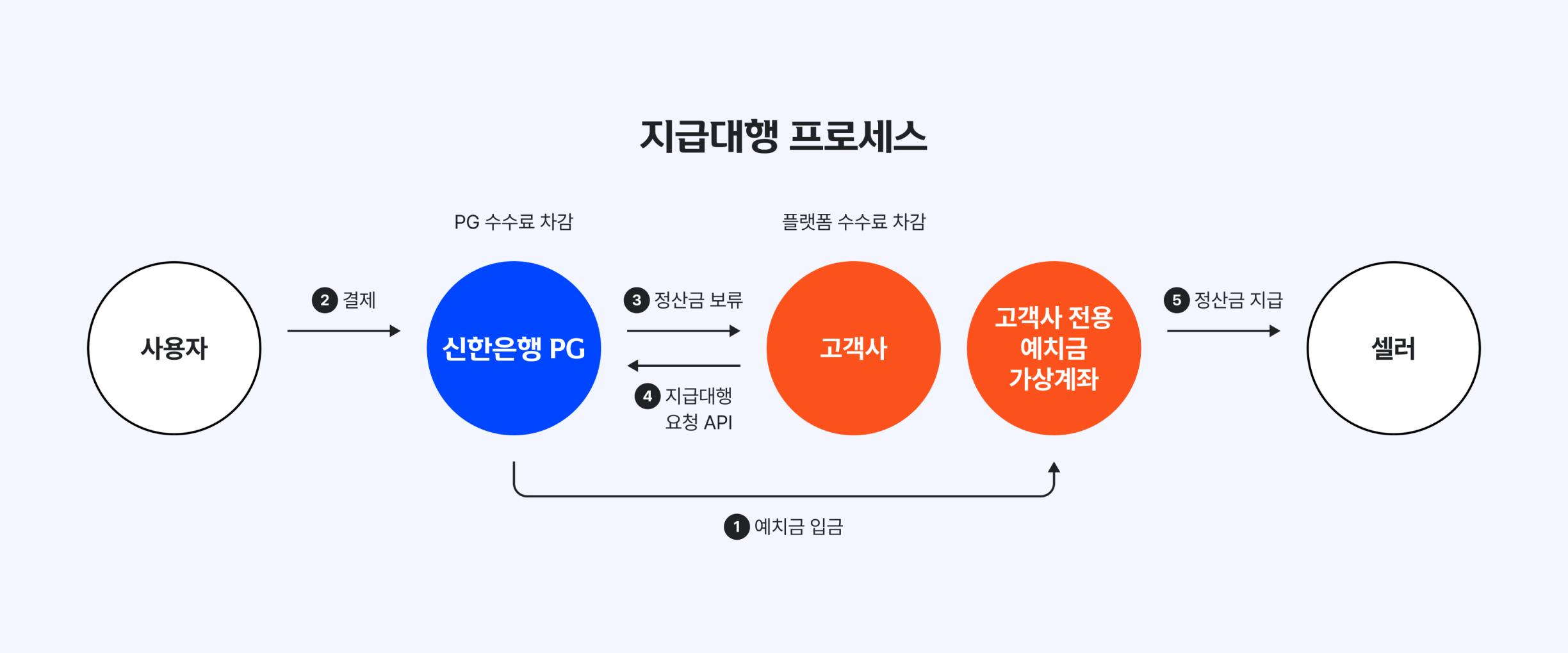 신한은행 PG의 지급대행 API는 오픈마켓 사업자를 대신해 신한은행이 판매자에게 정산금을 지급대행하는 서비스 입니다. 거래와 정산 과정을 효율적으로 처리하고, 정확한 지급을 보장하여 비즈니스 상 신뢰를 구축하는 데 중요한 역할을 합니다.